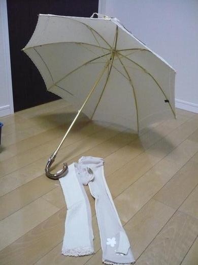 日傘と日焼け防止用の袖(なんて名前か知らない。汗)