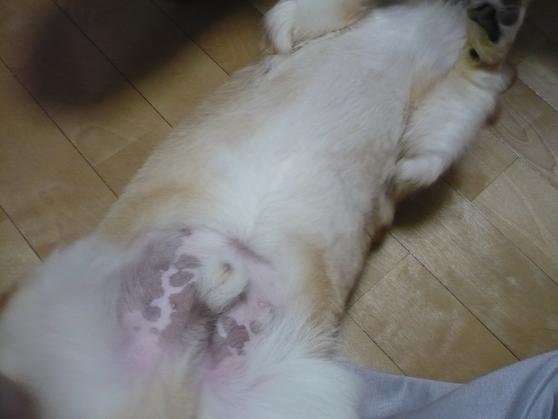 わかりづらいけどお腹は毛が短くなったのです。