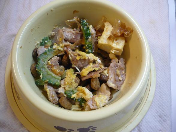 さすがにゴーヤーの苦味に一瞬驚いてたけど結局ぺロッと完食。