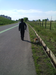 土手には家族連れ、うちのようにわんことお散歩する人、野球・サッカー・ジョギング・サイクリングなどのスポーツを楽しむ人など様々。